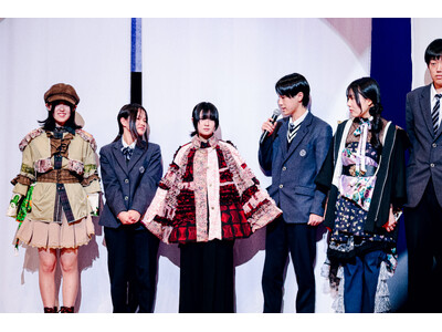 ファッションショー後、デザインを手がけた生徒たちも舞台上に登場し、「想像以上の再現度に驚いた」「二次元で描いたデザインが、こんなに素敵な服になるとは思わなかった」と、完成した商品を前に喜びと感動を語りました。