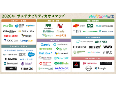 社会課題をオモシロく解決する株式会社UPDATER(本社:東京都世田谷区、代表取締役:大石英司)が運営する法人向けプラットフォーム「みんなSX for Biz」は、エネルギー・脱炭素、農業・食・地域、環境・資源循環、テクノロジー・デジタル、人・組織・社会、メディア・情報発信、モビリティ・インフラの7カテゴリーにわたり、サステナビリティに関わる主要企業・サービスを整理・可視化した2026年版「サステナビリティカオスマップ」を公開しました。