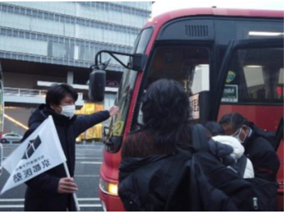 ホテルから試験会場までの送迎引率や、試験会場での受験生への激励の様子などを