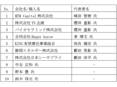 本勧告書において、当社独立委員会は、MTM Capital株式会社、株式会社YN企画、バイオセラミック株式会社、合同会社Happy horse、KING有限責任事業組合、静岡エネルギー株式会社、株式会社日本シーサプライ、中谷正和氏、野本豊氏及び鈴木祥元氏(以下「本認定対象株主」といいます。)の間において、当社株式に関して共同協調行為に該当する行為を行っていると認められる旨勧告しております。