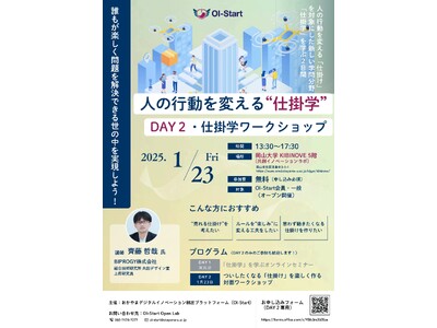 国立大学法人岡山大学(本部:岡山市北区、学長:那須保友)が事務局を設置している「おかやまデジタルイノベーション創出プラットフォーム (OI-Start)」では、「仕掛学」をテーマとした対面ワークショップを、2026年1月23日(金)13:30~17:30に本学津島キャンパスで開催します。「仕掛学」とは、人々の行動を自発的に変えるためのアプローチです。