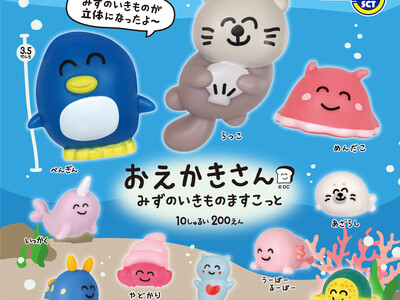 縁日商材をはじめとする玩具等の製造販売を行う株式会社三洋堂(本社:愛知県岩倉市、代表取締役:折小野 嘉輝)は、カプセルトイの新商品『おえかきさんみずのいきものますこっと』全10種を、2026年1月26日(月)より全国のカプセルトイ自動販売機で1回200円(税込)にて順次発売を開始いたします。