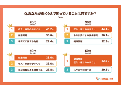 1. 年代で変わる“働く不安” 20代は子育て、30・40代は急な出費、50代はスキル不安