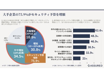 株式会社アシュアード(本社:東京都渋谷区、代表取締役社長:大森 厚志)が運営する、セキュリティの信用評価プラットフォーム「Assured(アシュアード)」は、従業員1,000名以上の企業に所属する情報システム・セキュリティ担当者500名を対象に、「企業のセキュリティ予算と経営層のリスク認識に関する調査」を実施しました。