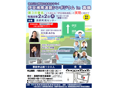 「第3の東名」ともいえる伊豆湘南道路の早期実現に向け、より多くの人にこの道路の必要性を知っていただくため、次のとおり真鶴町でシンポジウムを開催します。