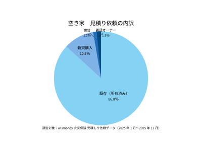 空き家における見積り依頼の内訳。既存(所有済み)物件が86.8%に達しており、新規購入よりも既存資産の維持・管理を目的とした保険検討が主流であることが分かります。
