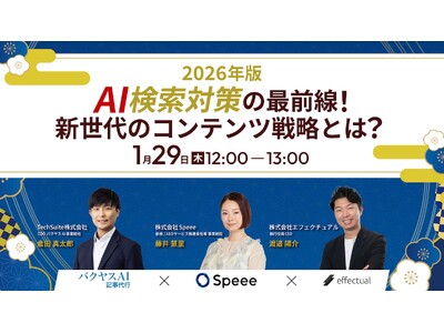 株式会社エフェクチュアル(本社:東京都港区、代表取締役:田中倫明)は、生成AI時代のSEO・コンテンツマーケティングをテーマとしたオンラインウェビナー「【2026年版】AI検索対策の最前線!新世代のコンテンツ戦略とは?」に登壇いたします。本イベントは2026年1月29日(木)12:00よりオンラインにて開催され、参加費は無料です。