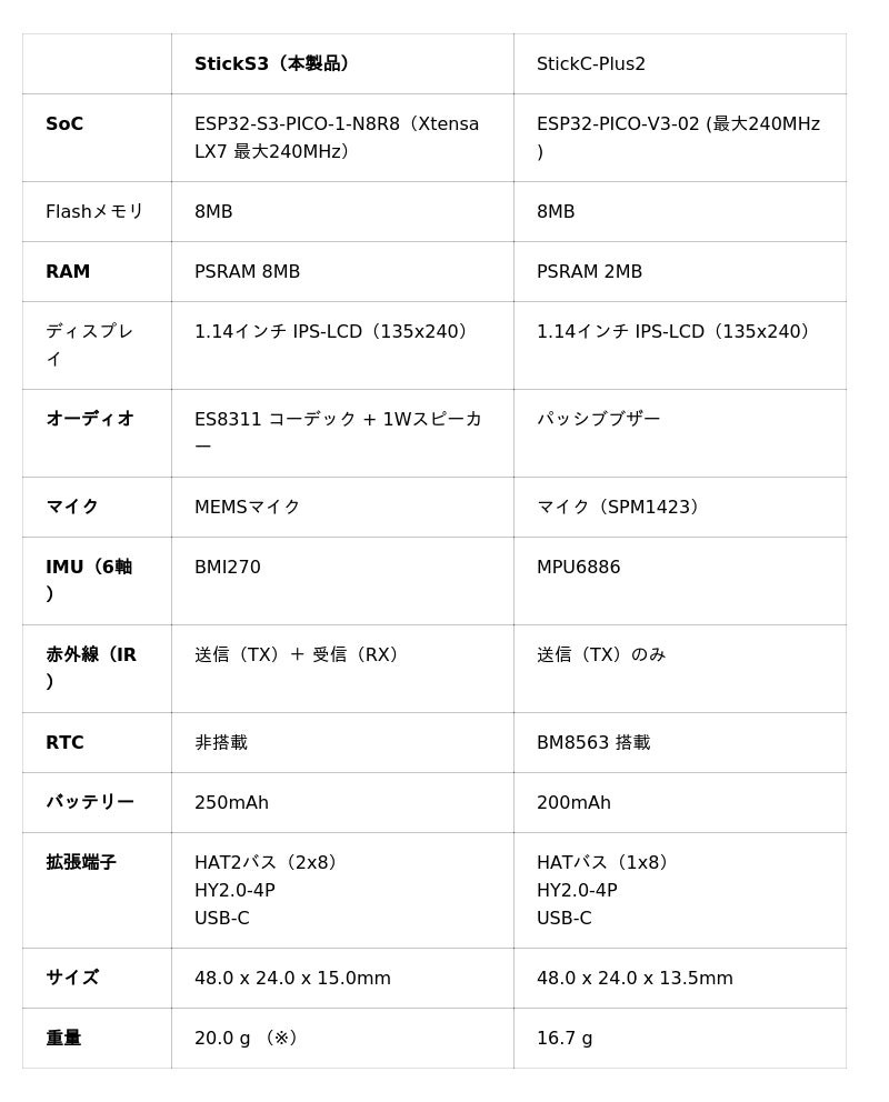 ▶︎ 「M5StickS3」の仕様