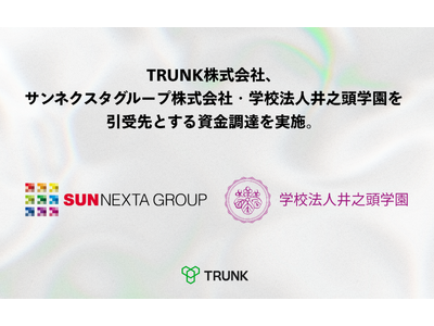 オンライン研修サービス「Workschool」を運営する、TRUNK株式会社(本社:東京都渋谷区、代表取締役CEO:西元 涼、以下「TRUNK」)は、サンネクスタグループ株式会社(本社:東京都新宿区、代表取締役社長:高木 章)、学校法人井之頭学園(本社:東京都武蔵野市、藤村女子中学・高等学校 学園長:高橋 あゆち)を引受先とする資金調達を実施いたしました。
