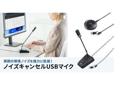 サンワサプライ株式会社(本社:岡山市北区田町1-10-1、代表取締役社長 山田和範)は、先進的なDSPノイズキャンセリング機能を搭載したUSBマイク「MM-MCTC02NC(スタンド型)」「MM-MCTC03NC(フラット型)」を発売しました。