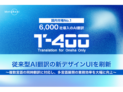 株式会社メタリアルグループで、国内市場No.1※のAI翻訳サービスを開発・提供する株式会社ロゼッタ(代表取締役:五石 順一)は、2026年1月、高精度AI翻訳「T-4OO(ティーフォーオーオー)」において、従来型AI翻訳機能の新デザインUIへのアップデートを実施したことをお知らせします。