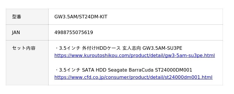 - 外付けHDDケースと24TB HDDが一緒になった、お得なプライスのセットモデル。