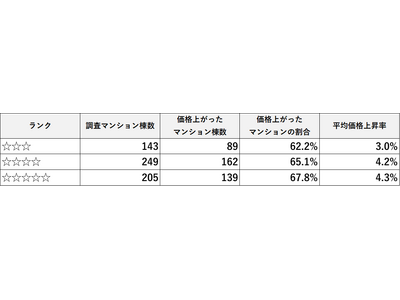 大阪府・京都府・兵庫県の分譲マンションを対象とした分析では、評価が最も高い「星5つ」のマンションの約7割で価格上昇が確認され、平均上昇率は4.3%に達しました。「星4つ」も同様に高水準の結果を示す一方、「星3つ」では価格上昇割合・上昇率ともに大きく低下しています。これらのデータは、「評価が高い」すなわち「管理状態が良好」であるほど、資産価値が維持・向上しやすいことを明確に示しています。