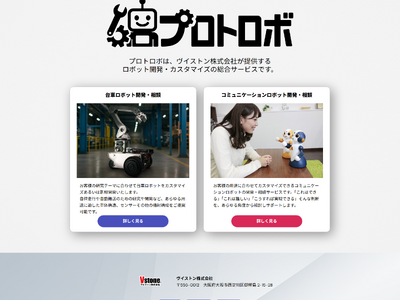 ヴイストン株式会社(本社:大阪府大阪市、代表取締役:大和信夫)は、既存ロボット製品へのカスタマイズや機能の追加、新規開発等に関して申し込みを受け付けるWebサイト「プロトロボ(