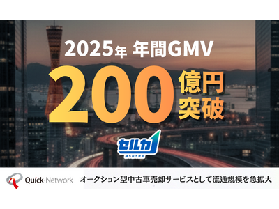 クイック・ネットワーク株式会社(本社:兵庫県神戸市、代表取締役社長:田畑 翔利)が運営する中古車オークションサービス「勝ち抜き査定のセルカ」は、2025年1月~12月の累計流通取扱高(GMV)が200億円を突破しました。