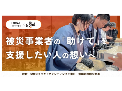 株式会社ボーダレス・ジャパン(代表取締役CEO:田口一成/本社:福岡県福岡市)が運営する、ソーシャルグッドに特化したクラウドファンディングサービス「For Good」(事業代表:小松 航大)は、地域発信型メディア「LOCAL LETTER」(運営:株式会社WHERE)と連携し、全国の災害支援を継続的に実施していくことをお知らせします。