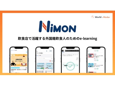 クックビズ株式会社のグループ会社で、特定技能外国人の登録支援機関である、ワールドインワーカー株式会社(本社:東京都中央区、代表取締役社長:藪ノ 賢次、以下ワールドインワーカー)は、登録支援サービスの一環として、飲食店で働く外国籍人材向けe-learningサービス「NIMON(ニモン)」をリリースしました。