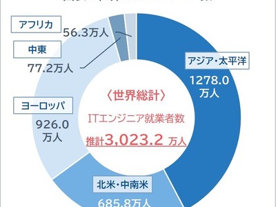 ・世界のITエンジニア数は、前年比約2.2%増の3,023.2万人に