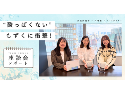 もずく・めかぶ等の食品製造及び販売をおこなっている、山忠食品工業株式会社(代表取締役社長:野村正和 本社:三重県亀山市、以下、山忠食品)が提供する「TSUKE MOZUKU(つけもずく)」について、フードライターおよび料理家を交えた座談会を実施しました。