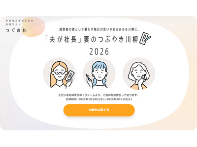 ご応募いただいた作品の中から、「最優秀賞」(1点)のほか、優秀賞として「審査委員長賞」、「つぐのわ賞」、「女性社長のココトモひろば賞※」(各1点)、特別賞「ママタルトの“推し川柳”賞」(1点)、特別賞「旅行・おでかけ川柳賞」(1点)、「奨励賞」(5点)、「中小企業応援賞」(5点)、「佳作」(15点)の計31点を選出します。受賞作品は「『夫が社長』妻のつぶやき川柳2026」特設サイト(