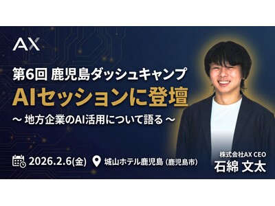 株式会社AX(所在地:福岡県福岡市、代表取締役:石綿 文太)は、2026年2月6日(金)に鹿児島県鹿児島市で開催される「第6回 鹿児島ダッシュキャンプ」のパネルディスカッション4【AIセッション】に代表の石綿が登壇することをお知らせいたします。