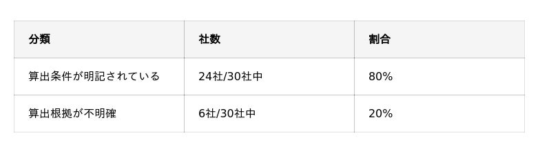 算出根拠が不透明だった6社について、具体的にどのような問題があったのかを整理します。主に3つのパターンの問題が存在しました。