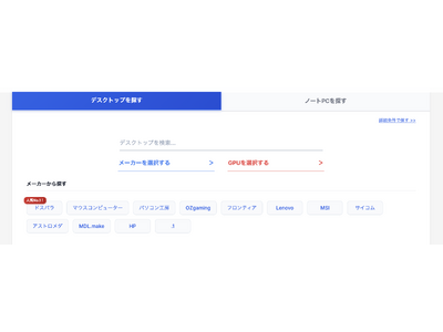 ゲーミングPC・BTOをメーカー横断で一括検索できるサイトです。価格・GPU・CPU・メモリ・ストレージなど細かな条件で絞り込み、自身に最適な1台を探すことができます。
