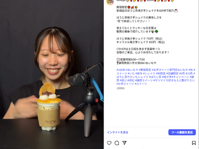 株式会社おいもや(本社:静岡県掛川市、代表取締役:関谷夕佳)は、高校生の探求学習活動と企業のSNS運営課題をマッチングする取り組みを実施し、高校生と共同でInstagram動画コンテンツを制作しました。ASMR動画、ドラマ仕立ての商品紹介、アレンジレシピ動画の3本を投稿し、合計16,000回以上の再生数を記録。若年層への新たなアプローチと、企業・教育双方に価値を生む取り組みとなりました。