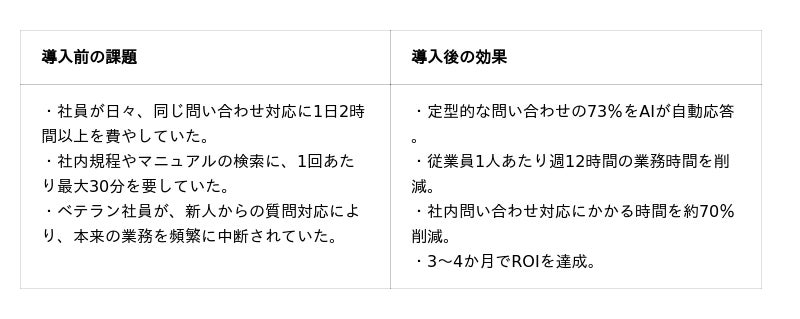 - 問い合わせ対応にかかる業務時間を約70%削減。