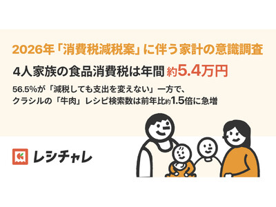 56.5%が「減税しても支出を変えない」と慎重な一方、贅沢への期待も。クラシルの「牛肉」レシピ検索数は前年比約1.5倍に急増