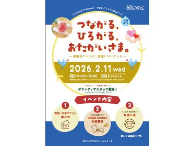 この度、福島県田村市にてカフェ・コミュニティスペースを運営する株式会社Gallopinto様(ガジョピント)(所在地:福島県田村市滝根町、代表取締役:宮之原尚子)が、2026年2月11日(水・祝)優しさが循環する持続可能な地域づくりを目指し、「つながる、ひろがる、おたがいさま~感謝をバトンに。恩送りマーケット~」を開催されます 。