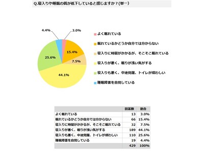 寝入りや睡眠の質について尋ねたところ、