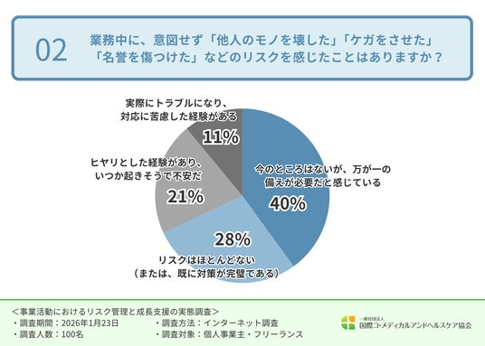 一般社団法人国際コ・メディカルアンドヘルスケア協会(ICHA)(https://icha.jp/)(所在地:神奈川県川崎市、代表理事:飯田 正人)は、個人事業主・フリーランスを対象に「事業活動におけるリスク管理と成長支援」に関する調査を実施しました。