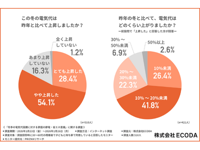 株式会社ECODA(本社:東京都渋谷区、代表取締役:平間 一也、https://ecoda-corp.com/)は、30~60代の既婚者で子どもと持ち家で同居している方を対象に、「冬季の電気代高騰に対する家庭の節電・省エネ意識」に関する調査を行いました。