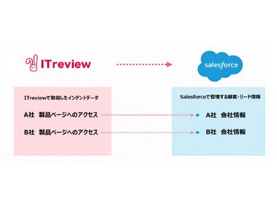 本連携により、ITreviewで取得したインテントデータ(※)をSalesforce上に直接取り込み、企業情報に紐づけて管理することが可能となり、見込み顧客の検討状況を踏まえた、より精度の高いマーケティング・営業活動を実現します。