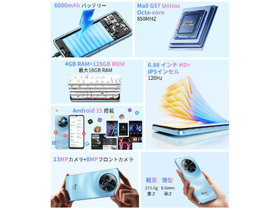 本製品は、快適な日常使用を追求したスマートフォンです。大容量の仮想RAMを含む最大32GB相当のメモリ環境、6.88インチの120Hz高リフレッシュレート大画面、長時間使用を可能にする6000mAh大容量バッテリーを搭載。さらに最新のAndroid 15を採用し、プライバシーとセキュリティも強化されています。Geminiアプリ対応により、AIを活用した多様なタスクも手軽に実行可能です。
