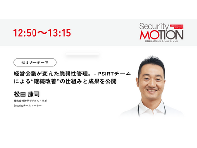 情報セキュリティサービス「Proactive Defense」を提供する株式会社神戸デジタル・ラボ(兵庫県神戸市中央区、代表取締役社長 玉置慎一、以下 KDL)は、2026年3月4日(水)にエムオーテックス株式会社(大阪市淀川区、代表取締役社長 徳毛博幸)主催のオンラインカンファレンス「Security MOTION 2026 Spring」にて、KDL Securityチームオーナー 松田康司が登壇することをお知らせします。