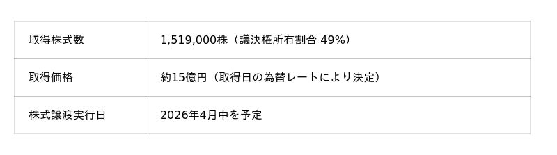 このたび株式を取得するCTCA社は、ジャックスがマレーシアに進出した際の出資先Carsome Capital Sdn. Bhd.の親会社であるCarsome Sdn. Bhd.(以下「Carsome社」)、そのCarsome社の持株会社であるCARSOME GROUP PTE. LTD.が出資するCTAM社傘下のファイナンス会社であります。ジャックスが長年培ってきた販売金融(割賦)事業のノウハウを提供することで、CTCA社におけるオートローン事業の拡大が期待されます。