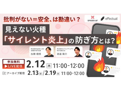 株式会社エフェクチュアル(本社:東京都港区、代表取締役:田中倫明)は、SNS・広告配信を起点とした風評リスクやブランドセーフティをテーマとしたオンラインウェビナー「見えない火種「サイレント炎上」の防ぎ方とは?」を2026年2月12日(木)11:00よりオンラインにて開催いたします。参加費は無料です。