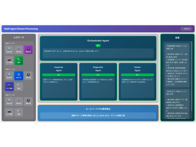 技術的な特徴として、Vantiqのリアルタイム処理により、データを「保存してから処理」するのではなく、受信した瞬間に判断を行います。イベントドリブンのアーキテクチャにより、状況変化をトリガーとして複数のAIエージェントが自律的に起動・連携します。