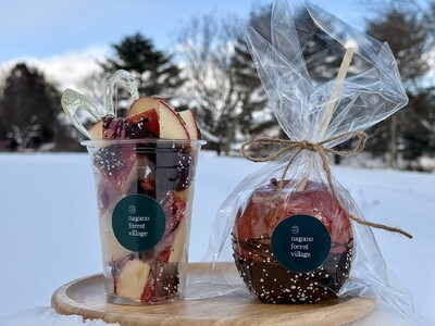 りんごの旬の時期には、信州産のりんごを使用した、外はパリッと中はジューシーな「りんご飴」が人気です。