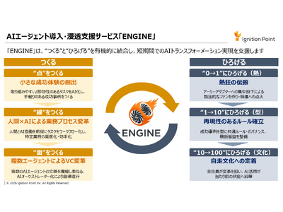 イグニション・ポイント株式会社(本社:東京都渋谷区、代表取締役社長:末宗 喬文、以下 イグニション・ポイント)は、企業のAIトランスフォーメーション(AIX)を加速させ、組織全体へのAI活用と成果創出を支援する新サービス「ENGINE(エンジン)」の提供を開始します。