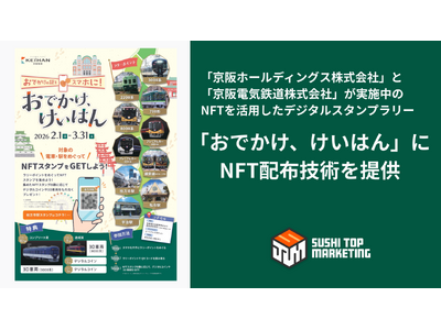 SUSHI TOP MARKETING株式会社(本社:東京都千代田区、代表取締役:徳永 大輔、以下「当社」))は、京阪ホールディングス株式会社(本社:大阪市中央区、社長:平川 良浩、以下「京阪ホールディングス」)と京阪電気鉄道株式会社(本社:大阪府枚方市、社長:井上 欣也、以下「京阪電車」)が実施するNFTを活用したデジタルスタンプラリー「おでかけ、けいはん」にNFT配布技術を提供いたしました。