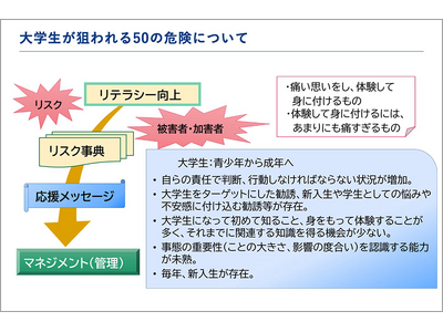 - 執筆に参加した学生の声をもとにマンガでわかりやすく大学生活に潜む危険をお伝えしています