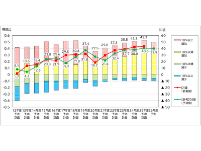「増加」から「減少」を差し引いた指標であるDI値(*2)は43.3ポイントとなり、新型コロナの影響で落ち込んだ2020年度以降、5年連続で上昇しました。26年度予測のDI値も39.9ポイントと、高水準を維持しており、上昇基調は継続する見込みです。