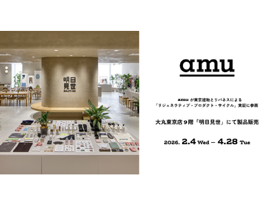 amu株式会社は、2026年2月4日~4月28日に大丸東京店9階の複合型体験ストア「明日見世(あすみせ)」にて、廃漁網由来素材「amuca(R)」を使用したオリジナル製品を展示・販売します。