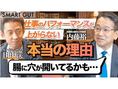 アカデミア向けマイクロバイオーム研究支援「細菌叢DNA抽出」サービスの提供および、複合・発酵性食物繊維(ルミナコイド)を配合した「ルルミルク」、サロン専売品「ルミファス」を販売する株式会社Smart Gut(本社:東京都中央区、代表取締役:酒井康光)は、2026年1月30日(金)より、京都府立医科大学教授 内藤裕二医学博士と、元ゴールドマン・サックス投資部門統括 現 不動産投資責任者 田中渓氏による、ビジネスパーソンのパフォーマンス向上を目的とした新対談シリーズを当社YouTube「SMART GUT オナカのチカラ(腸活)チャンネル」にて配信スタートいたしました。
