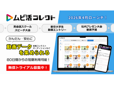 ネット開催の動画投稿コンテストやオーディションで、動画データを簡単・安全に収集できる 『ムビ活コレクト』を2026年4月ローンチ! 限定5社様 無償トライアル募集を開始