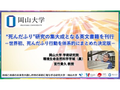 国立大学法人岡山大学(本部:岡山市北区、学長:那須保友)の学術研究院環境生命自然科学学域(農)の宮竹貴久教授は、動物界に広く見られるにもかかわらず、長らく体系的研究が進んでこなかった捕食者回避行動「死んだふり」を、世界で初めて総合的にまとめた英文書籍を刊行しました。