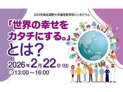 武蔵野大学(東京都江東区・西東京市)は、2月22日(日)に武蔵野大学通信教育部シンポジウム【「世界の幸せをカタチにする。」とは?】を開催します。